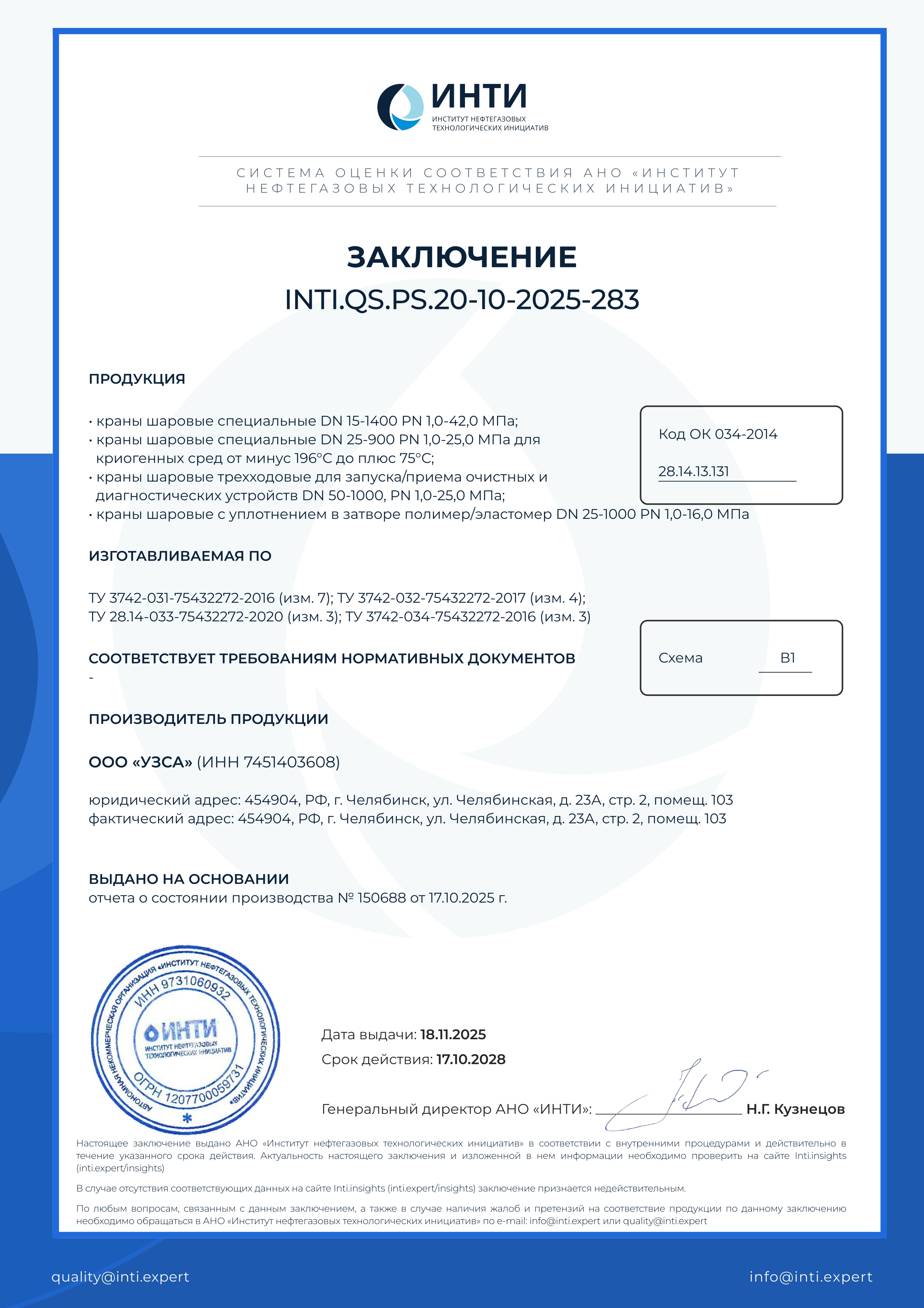 ООО «УЗСА» подтвердило высокий производственный и технологический уровень, успешно завершив прохождение комплексной оценки соответствия Института нефтегазовых технологических инициатив («ИНТИ»). Предприятие включено в реестр проверенных производственных площадок INTI.insights – крупнейшего отраслевого каталога.